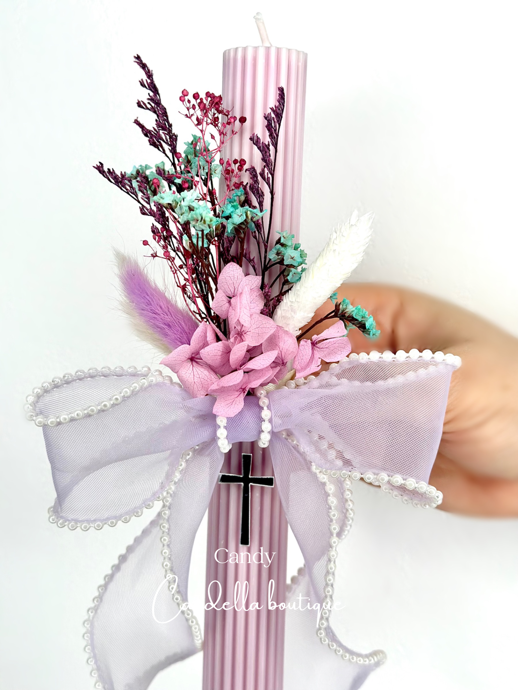 Candle might look slightly different to the image shown due to color variations of the dried flowers.